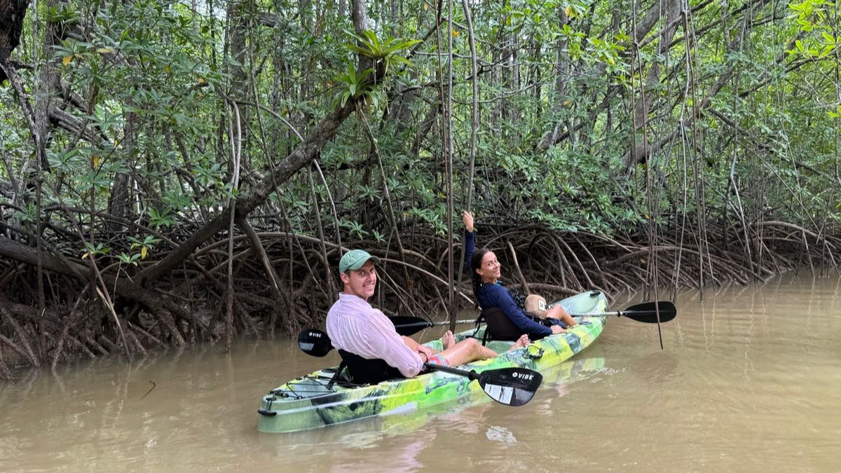 Our morning began by kayak, paddling quietly through the mangroves of the Río Esquinas. Arching roots rose like cathedral columns while kingfishers and herons flashed through the canopy. Here, freshwater and saltwater merge, creating a living, breathing ecosystem alive with hidden movement.